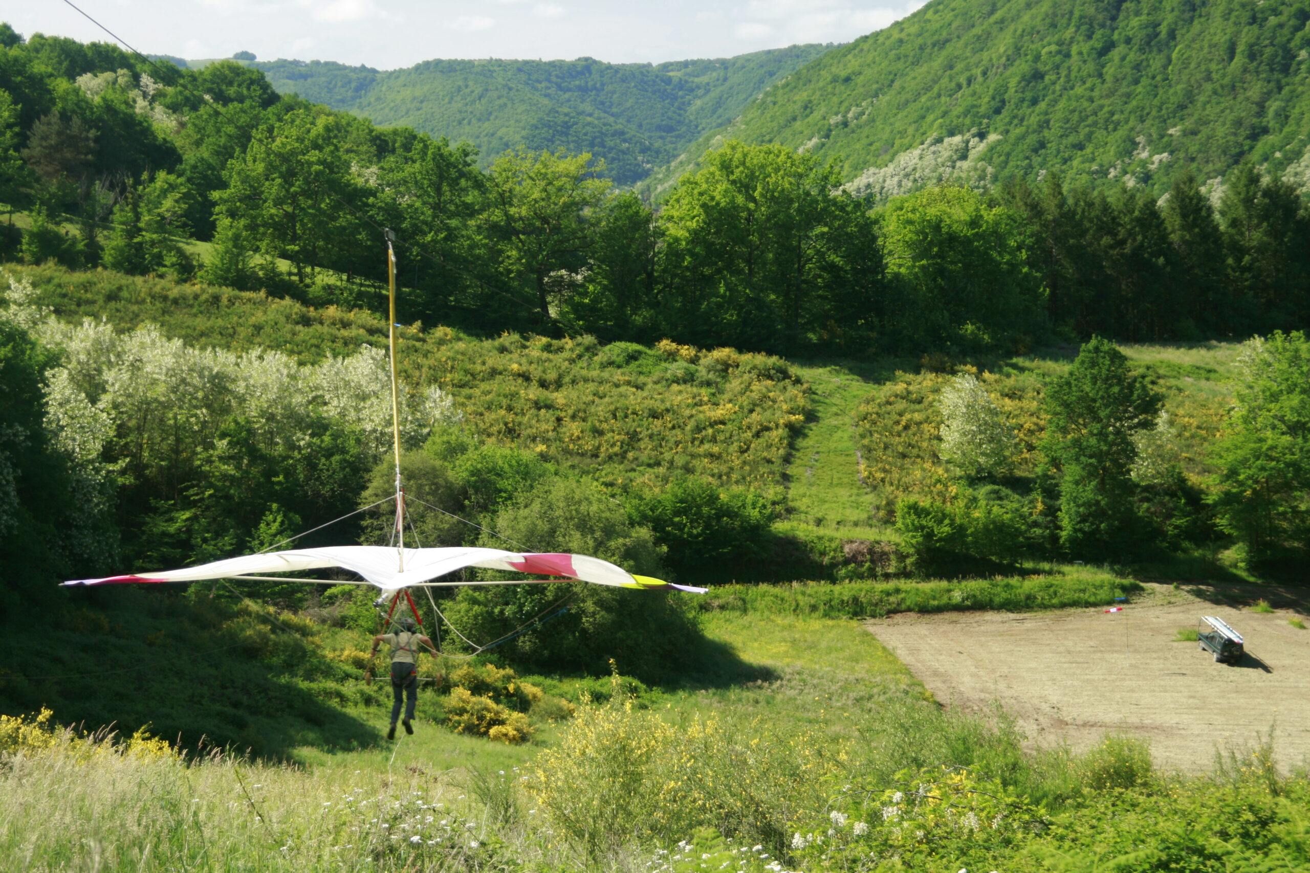 Sur une pente à forte déclivité, une tyrolienne longue de 300 mètres permet de voler en toute sécurité. Ce procédé fait la joie des petits comme des grands. Sa conception en fait aussi un des outils pédagogiques les plus performants, il permet l’apprentissage du décollage et de l’atterrissage en Delta.